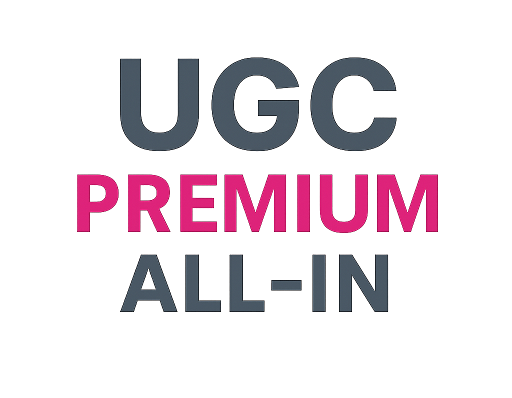 UGC Premium All- In ist ein digitales Mentoring-Paket aus Kursinhalten, Community und zwei 1:1 Calls. Du erhältst eine klare Struktur, praxisnahe Anleitung und Unterstützung bei der Umsetzung im Bereich UGC/Content.